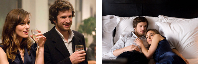 Étant un grand fan de Keira Knightley depuis maintenant quelques années, autant dire tout de suite que j’attendais impatiemment de voir ce film. Qui plus est un film avec Guillaume Canet, un acteur trop rare à mon goût que j’apprécie beaucoup, autant devant que derrière la caméra. Je partais donc relativement optimiste et je dois dire que je n’ai pas été déçu. Effectivement, sans pour autant aborder des thèmes originaux (le couple et l’adultère notamment), la réalisatrice est parvenu à proposer un traitement très différent de ce qu’on a l’habitude de voir. C’est d’ailleurs l’un des aspects que j’ai bien aimé dans ce film, le fait qu’il ne soit pas moralisateur. On nous raconte simplement, le plus fidèlement possible, deux jours de la vie d’un couple sans essayer de montrer qui a raison ou qui a tort. L’accent est mis sur le cheminement personnel et le questionnement auquel Joanna et Michael sont soumis, chacun de leur côté. Bref, pour un sujet délicat comme celui-là, j’ai trouvé le positionnement neutre de la réalisatrice très adapté et l’histoire a finalement plus d’impact ainsi je pense.