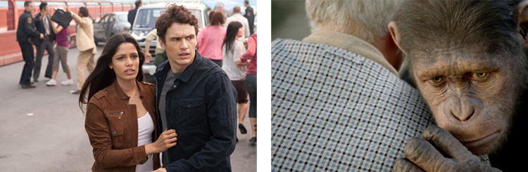 Je ne suis pas aussi enthousiaste sur ce prequel… En effet, même si les effets spéciaux sont très convaincants, les acteurs et le scénario ne m’ont pas convaincus. James Franco et Freida Pinto forment un couple vraiment trop lisse. Et ce qui m’a le plus dérangé c’est la fin… J’aurais vu quelque chose de beaucoup plus sombre et pessimiste, là on est en face d’une fin sans saveur, beaucoup trop consensuelle.