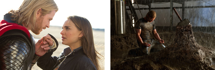 Je dois dire que j’ai été agréablement surpris par ce film que je n’attendais pas aussi prenant. En effet, je suis rentré assez vite dans l’histoire grâce notamment aux décors et, de façon générale, à l’aspect visuel que j’ai trouvé particulièrement soigné. Je pense par exemple au royaume d’Asgard qui était vraiment très impressionnant. Dans le même registre, j’ai également beaucoup apprécié les effets spéciaux tout à fait réaliste. Bref, d’un point de vue esthétique, c’est vraiment travaillé, il n’y a rien à redire. Côté scénario, c’est plutôt pas mal même si le format est relativement habituel et prévisible. A savoir un héros arrogant au début qui va devenir humble en très peu de temps et sauver tout le monde. Néanmoins, je ne me suis pas du tout ennuyé car comme je l’ai dit, l’histoire est prenante. Il faut dire que je ne connaissais pas grand chose à ce héros avant de voir le film et j’ai bien aimé le fait qu’il soit banni de son royaume avec son pouvoir à portée de main mais inaccessible s’il ne change pas. C’est un aspect qui m’a plu car ça a permis de poser les bases de l’histoire et d’en apprendre plus sur le personnage et son univers sans pour autant laisser de côté les scènes d’action. Du coup, j’ai vraiment trouvé qu’il y avait un parfait équilibre entre l’action et l’histoire. Qui plus est, les quelques touches d’humour fonctionnent plutôt bien et rendent le film encore plus agréable.