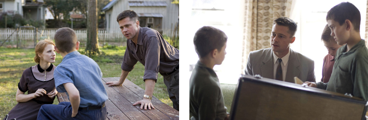 Après, sur le plan technique, c’est vrai qu’il faut reconnaître que certains plans sont absolument superbes mais vraiment trop peu nombreux à mon goût que pour faire un bon film. D’autant plus qu’il ne suffit pas que ce soit joli pour que le film soit réussi, Zack Snyder en sait quelque chose. Et puis je dois avouer que sur ce coup-là, je n’ai pas particulièrement apprécié tous les mouvements de caméra de Terrence Malick qui avaient de quoi filer la nausée à la longue. Concernant le casting, c’est assez difficile de se prononcer car les personnages sont quand même assez spéciaux et pas toujours mis en valeur. A commencer par le personnage de Sean Penn qui est finalement fort peu présent et qui se contente de marcher un peu partout. Je me suis vraiment demandé l’intérêt de s’offrir les services d’un tel acteur pour un rôle aussi insignifiant si ce n’est pour faire joli sur l’affiche. Ensuite, même si je ne suis pas un grand fan de Brad Pitt, je dois reconnaître que le bonhomme assure. C’est de loin le personnage le plus intéressant selon moi et heureusement qu’il était là sinon je ne sais pas ce que ça aurait pu donner. Enfin, je suis un peu plus réservé concernant Jessica Chastain car son personnage est quand même un peu effacé par rapport aux autres.