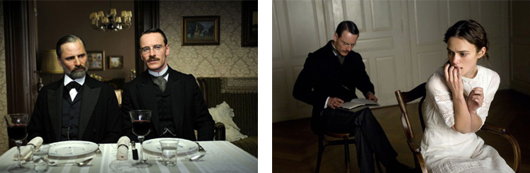 Mais si le film est aussi intéressant, au-delà de son contenu évidemment, c’est sans aucun doute grâce à la qualité de jeu des trois acteurs principaux. En effet, je les ai tous trouvés très bon, bien que se distinguant dans des registres parfois fort différents. Keira Knightley tout d’abord est absolument remarquable dans le rôle de cette patiente un peu folle souffrant de pulsions masochistes. J’avoue que sa prestation au début du film m’a complètement bluffé car ce n’est jamais évident de jouer à l’écran ce type de trouble qui nécessite de trouver l’équilibre idéal entre ne pas en faire assez et en faire trop. Et personnellement, je trouve qu’elle y est parvenue avec beaucoup de maîtrise. Je ne rejoins donc pas les critiques qui s’obstinent à lui reprocher de surjouer ses personnages. Ensuite, face à elle, Michael Fassbender et Viggo Mortensen ne sont pas en reste et livrent eux aussi une prestation impeccable. Le premier confirme avec ce rôle de Carl Jung tout son talent et s’affirme encore davantage comme une star en devenir. Quant au second, il incarne parfaitement ce rôle de Sigmund Freud et donne, comme à son habitude, beaucoup de charisme à son personnage. Mais plus que leurs performances individuelles, j’ai surtout apprécié les échanges entre les différents protagonistes, surtout entre Jung et Freud. Si le premier n’hésite pas à se remettre en question, le second en revanche campe sur ses positions et tente d’imposer, avec une élégance verbale non négligeable, toutes ses idées.