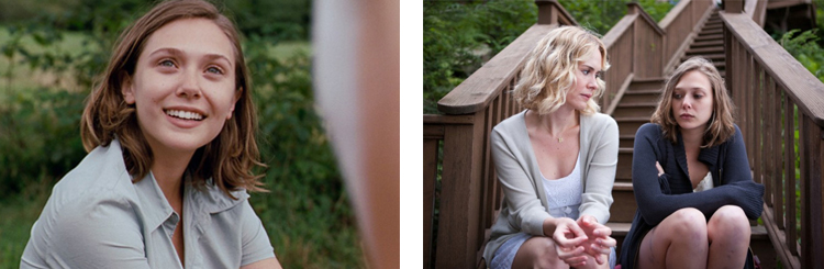 Ce qui rend le film intéressant, c’est également l’interprétation très réussie des acteurs. On ne le dira jamais assez mais dans un tel film, la performance des acteurs peut vraiment faire pencher la balance d’un côté ou de l’autre. Et fort heureusement, la balance a penché du bon côté ici. Effectivement, Elizabeth Olsen et John Hawkes, pour ne citer qu’eux, sont vraiment tous les deux remarquables. Je découvrais la première avec ce film, pour cause vu que c’était son premier rôle, et j’ai vraiment été séduit par sa prestation. Et pourtant son personnage n’était pas évident à jouer car il s’agit d’une femme ayant subi des pressions physiques et mentales qui influent sur sa perception de la vie et même de la réalité. Quant à John Hawkes, je trouve qu’il a vraiment un charisme fou. J’avais déjà adoré sa performance dans Winter’s Bone et c’est avec beaucoup de plaisir que je l’ai retrouvé ici dans un rôle finalement pas si éloigné. Même sans rien dire, il arrive à faire passer une multitude d’émotions. Je ne vais pas en dire trop car son personnage est quand même assez énigmatique mais rien que la séquence où il chante le morceau folk vaut le détour.