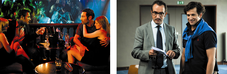 De manière générale, je dois dire que j’ai beaucoup aimé ce film que j’ai trouvé nettement plus surprenant que ne le laissait présager la bande annonce. Effectivement, je m’attendais à une comédie un peu machiste et sexiste avec Dujardin et Lellouche en beaux gosses tombeurs de minettes. Et au final, ce n’était pas le cas, ou en tout cas pas entièrement. En effet, si le film aborde ce type de comportements dans certains sketchs, il en aborde également plein d’autres encore plus intéressant. A l’image de la séquence entre Jean Dujardin et Alexandra Lamy qui délaisse un peu la comédie pour se concentrer sur le drame. C’est un passage que j’ai beaucoup apprécié car au-delà d’être bien joué, il place les deux membres du couple sur le même plan d’égalité et met en lumière certains aspects de l’infidélité auxquels on ne pense pas forcément. Du coup, moi qui allais voir le film en connaissance de cause en m’attendant à ne voir (et ça m’allait très bien) que le style d’humour suggéré par le trailer, j’ai été très agréablement surpris. J’ai également été emballé par la qualité visuelle de certaines séquences qui doivent beaucoup au montage et à la BO. Le générique par exemple qui est très réussi mais aussi la méga fiesta à Las Vegas, parfaitement rythmée par le morceau Time to dance du groupe The Shoes.