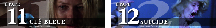 Etape clé et suicideNous retrouvons ensuite Diane dans le canapé qui scrute la clé bleue sur la table et qui prend progressivement conscience de la dure réalité. Enfin, la dernière séquence décrit la mort de Diane. Celle-ci entend frapper à sa porte et nous pouvons deviner qu’il s’agit probablement des deux inspecteurs dont sa voisine lui a parlé. Nous pouvons également imaginer que son choix de changer d’appartement a été motivé par la volonté d’éviter la confrontation avec ces fameux inspecteurs. Quoi qu’il en soit, elle va alors prendre peur et halluciner une seconde fois. Ce qui va la conduire à s’enfuir dans sa chambre, saisir un révolver et se tirer une balle dans la bouche.