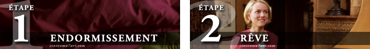 Etape endormissement et rêveEn premier lieu, nous pouvons voir Diane en caméra subjective tituber jusqu’à son lit et s’y allonger. Le rêve peut alors commencer et comme je le disais précédemment, celui-ci occupe la majorité du film. J’y reviendrai par la suite pour mettre en évidence certains éléments qui s’y déroule et qui sont intéressants pour bien comprendre l’histoire.