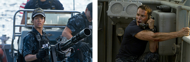 Maintenant, comme je le signalais en début d’article, le film s’assume totalement dans la mesure où rien que la bande annonce laissait déjà présager d’un tel résultat. Cela ne veut pas dire qu’on doit nécessairement oublier toutes les faiblesses scénaristiques du film mais au moins, on ne peut pas se plaindre d’avoir été trompé sur la marchandise. Côté casting, c’est toujours difficile de se prononcer sur les prestations des uns et des autres vu que ce genre de film ne requiert pas forcément de compétence dramatique hors du commun. Toutefois, si je compare avec d’autres blockbusters similaires, je dois reconnaître que j’ai plutôt bien apprécié la prestation d’Alexander Skarsgård et de Taylor Kitsch, deux acteurs qui se sont d’abord révélés dans des séries. Dans True Blood pour le premier et dans Friday Night Lights pour le second. Et vu que dans ces deux séries, ce sont justement les deux acteurs que je préfère, je suis assez content de voir que le cinéma leur offre de plus en plus de rôles. Je me réjouis d’ailleurs de voir la performance de Taylor Kitsch dans Savages, le prochain Oliver Stone. Sinon, les autres ne m’ont pas marqué plus que cela. Rihanna n’a pas grand chose à dire et est du coup assez inexistante, Brooklyn Decker est là essentiellement pour assurer la touche sexy du film et Liam Neeson n’a qu’un second rôle, même s’il est toujours aussi charismatique.