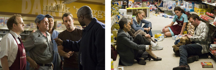 Avec un tel pitch, on peut vraiment s’attendre à tout et n’importe quoi. J’étais donc relativement partagé avant de voir le film. D’une part, j’étais plutôt rassuré de retrouver derrière la caméra Frank Darabont qui ne m’a jusqu’ici jamais déçu. Et d’autre part, je craignais tout de même le pire au vu du mélange de genres (horreur et fantastique) qui peut très vite tourner au vinaigre si le scénario n’est pas parfaitement maîtrisé. Et au final, je dois dire que le film est plutôt bon. Mais attention, il n’est pas exempt de défaut pour autant, loin de là. Je pense par exemple aux personnages qui ont souvent tendance à prendre toutes leurs décisions en dépit du bon sens. Aux nombreuses références religieuses qui n’étaient pas forcément nécessaires pour opposer les gens entre eux. Ou encore aux effets spéciaux qui sont vraiment très limites même s’il est évident que le faible budget de production n’a certainement pas aidé. Néanmoins, tous ces défauts sont mineurs et ne m’ont absolument pas empêché de rentrer dans l’histoire et de me questionner sur ce que je voyais. La question principale étant naturellement « Qu’est-ce que je ferais si j’étais à leur place? ». En sachant bien sûr qu’ils ignorent ce qu’il y a dans le brouillard et surtout jusqu’où il s’étend.