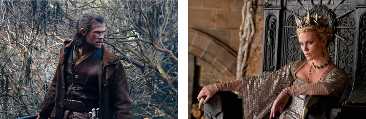 Côté casting, j’ai été bluffé par la performance de Charlize Theron qui est terriblement charismatique dans le rôle de la Reine Ravenna. Elle incarne magistralement cette femme (d’une beauté effrayante) en quête de pouvoir. Je dois reconnaître que plus le temps passe et plus j’apprécie cette actrice dont le panel de rôle est finalement assez large. A ses côtés, Kristen Stewart et Chris Hemsworth ne déméritent pas mais ils sont toutefois nettement en dessous. En effet, Kristen Stewart est plutôt à son aise dans toute la première partie du film mais dès que ça devient vraiment physique, je trouve qu’elle peine un peu à convaincre. Quant à Chris Hemsworth, même si le Chasseur est plus complexe qu’on ne pourrait le croire au départ, cela reste tout de même un personnage assez proche de ce qu’il a l’habitude de faire. Son interprétation est donc convaincante sans pour autant être transcendante.