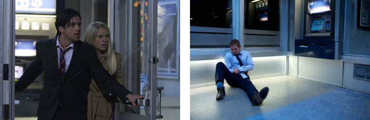 Trois collègues de boulot rentrent ensemble chez eux, après la fête de Noël de leur entreprise, et décident d’acheter des pizzas. Pour cela, ils ont besoin de liquide et s’arrêtent à un distributeur automatique (Automated Teller Machines) sur le parking désert d’un centre commercial. Alors qu’ils s’apprêtent à sortir du local qui abrite le distributeur, un inconnu les fixe depuis l’extérieur. Son visage est dissimulé par la capuche de son anorak qui le protège du froid. C’est un psychopathe et il vient d’assassiner sous leurs yeux une personne qui s’approchait. Par un malheureux coup du sort, ils n’ont aucun moyen d’appeler des secours. Terrifiés, les trois jeunes gens se barricadent pour échapper au tueur. Rapidement, leur courte halte se transforme en véritable lutte pour la vie.
