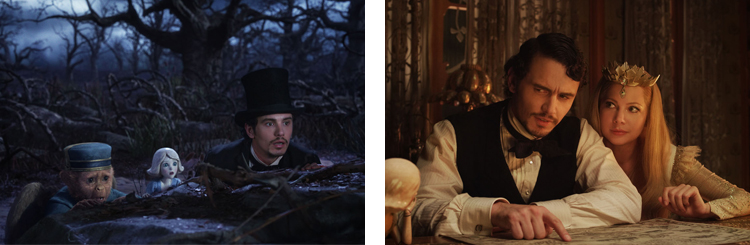 Sans forcément être un grand amateur de ce genre de production, je dois dire que j’ai été plutôt agréablement surpris par ce film. Tout d’abord car malgré l’emprise palpable du studio sur le réalisateur, j’ai quand même retrouvé la patte de Sam Raimi à l’un ou l’autre moment. Notamment lors de la superbe scène de tornade, au début du film, qui marque la transition entre le 4/3 – noir et blanc et le 16×9 – couleur. Et ensuite car l’univers fantastique du Pays d’Oz est magnifiquement retranscrit à l’écran, aussi bien au niveau des couleurs que des créatures qui le peuplent. Et que dire des paysages qui sont ici d’une beauté stupéfiante. Bref, le rendu visuel est impeccable et témoigne du plaisir immense que le réalisateur a pris à nous faire découvrir ce monde incroyable. Alors bien sûr, l’histoire souffre d’un scénario beaucoup trop prévisible que pour surprendre un public adulte mais l’univers est tout de même suffisamment riche que pour trouver de l’intérêt aux allées et venues des personnages.