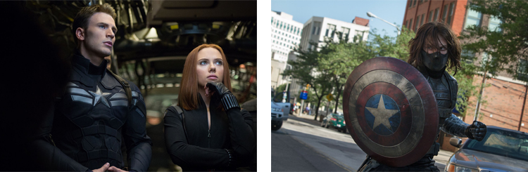 Photo captain america - le soldat de l'hiverMalgré tout, le film n’échappe pas à quelques défauts qui nuisent incontestablement à sa qualité globale. A commencer par le méchant de l’histoire qui peine un peu à exister. A trop vouloir développer les personnages se situant du bon côté de la barrière, les scénaristes en ont effectivement oublier de proposer un méchant charismatique et riche. On se retrouve du coup devant un personnage qui n’est certes pas inintéressant, mais dont le potentiel n’est certainement pas exploité à son maximum au vu de son historique particulier avec Captain America. En outre, si les scènes d’action ont le mérite d’être dynamiques, elles le sont parfois trop, au point de rendre quelques fois l’ensemble difficile à discerner. Elles ne sont pas à proprement parler illisibles, comme c’est parfois le cas dans d’autres réalisations, mais elles manquent en tout cas de clarté et de fluidité. Enfin, côté casting, le constat est en revanche extrêmement satisfaisant puisque absolument aucun acteur ne dénote par rapport aux autres. Ils se montrent tous convaincants, des premiers rôles aux seconds. Je ne passerai donc pas toutes les prestations en revue mais j’ai cependant envie d’insister sur la performance de Scarlett Johansson que j’ai trouvée vraiment rayonnante, que ce soit dans l’action, l’humour ou même le registre dramatique.