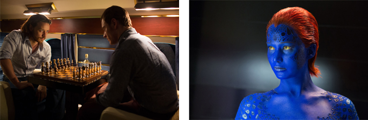 Photo x-men - days of future pastMais ce qui fait peut-être le plus la différence avec d’autres productions Marvel récentes, c’est assurément le travail minutieux effectué sur les personnages, et sur l’écriture en général. Bien qu’il s’agisse d’un divertissement à gros budget, on a en effet jamais l’impression d’assister à un spectacle formaté mettant en scène des protagonistes sans profondeur. L’histoire est solide et les personnages formidablement bien incarnés, en particulier ceux de la nouvelle génération (X-Men – Le Commencement) qui bénéficient d’un développement très intéressant. Ainsi, James McAvoy et Michael Fassbender livrent à nouveau une partition impeccable dans la peau de Charles Xavier et Magneto. Ils ne manquent pas de charisme et profitent de quelques scènes vraiment intenses. A leurs côtés, Jennifer Lawrence jouit d’un rôle nettement plus important que dans le premier film et, comme souvent depuis plusieurs mois, elle s’en sort admirablement bien. On sent qu’elle a pris énormément d’expérience depuis le volet précédent, où elle était tout de même plus en retrait, et c’est tout à l’avantage de son personnage de Mystique qui dévoile ainsi une belle émotion. Une émotion que l’on n’attendait pas spécialement et qui rend le film étonnamment touchant par moments. Au contraire des touches d’humour qui, elles, étaient plutôt attendues et qui font malgré tout toujours mouche.