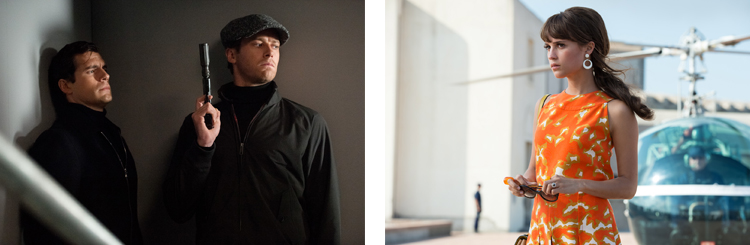 Néanmoins, avec une durée avoisinant les 2 heures, le film n’évite pas quelques longueurs gênantes qui auraient certainement pu être évitées en resserrant un peu l’intrigue. Cela reste malgré tout assez anecdotique au regard des nombreux motifs de satisfaction que le film procure. Parmi ceux qui n’ont pas encore été abordé, il y a notamment le casting qui livre une prestation tout à fait convaincante. A commencer par Henry Cavill, formidable en agent américain charmeur et arrogant. Je ne l’avais vu auparavant que dans Man of Steel et je l’ai, à nouveau, trouvé très à son aise dans un rôle pourtant complètement différent. A ses côtés, Armie Hammer est certainement moins charismatique mais délivre toutefois une performance correcte dans la peau de l’agent russe fier et impulsif. Il est vrai que les deux personnages sont extrêmement stéréotypés mais le réalisateur s’en amuse beaucoup dans l’écriture, ce qui donne lieu à des scènes particulièrement drôles. Enfin, la « petite » Alicia Vikander ne démérite pas face aux deux « énormes » comédiens et peut notamment compter sur son charme naturel ainsi que son talent pour s’imposer. Elle est de plus en plus présente en tête d’affiche et ce n’est vraiment pas pour me déplaire, tant c’est une actrice que j’apprécie.