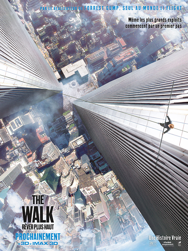 Disons-le franchement, la traversée finale est fantastique et justifie presque à elle seule l’achat d’un ticket de cinéma. Les plans sont splendides, la mise en scène fout le vertige et Joseph Gordon-Levitt en impose. Néanmoins, la séquence ne dure en fin de compte qu’une trentaine de minutes sur l’ensemble du film et n’excuse pas, ou pas totalement en tout cas, les faiblesses de ce qui précède. A commencer par l’idée saugrenue de filmer l’acteur pour la voix off. Un parti pris que je ne m’explique pas vraiment tant il n’apporte rien à l’ensemble, si ce n’est quelques baisses de rythme et un aspect burlesque dérangeant. Un aspect burlesque que l’on peut d’ailleurs étendre au film dans sa globalité puisque le réalisateur fait le choix de présenter l’histoire de Philippe Petit à la manière d’un conte, presque comme dans un rêve. Un choix judicieux pour imprimer sa patte au long-métrage, il l’avait d’ailleurs brillamment fait pour Forrest Gump, mais qui a ici pour effet de désamorcer considérablement la tension et d’affaiblir nettement la portée de l’exploit. Certes, cette légèreté fait partie intégrante du personnage mais elle est selon moi beaucoup trop appuyée et atténue du coup grandement la fibre dramatique du récit. Tout est vrai mais on peine souvent à le ressentir.