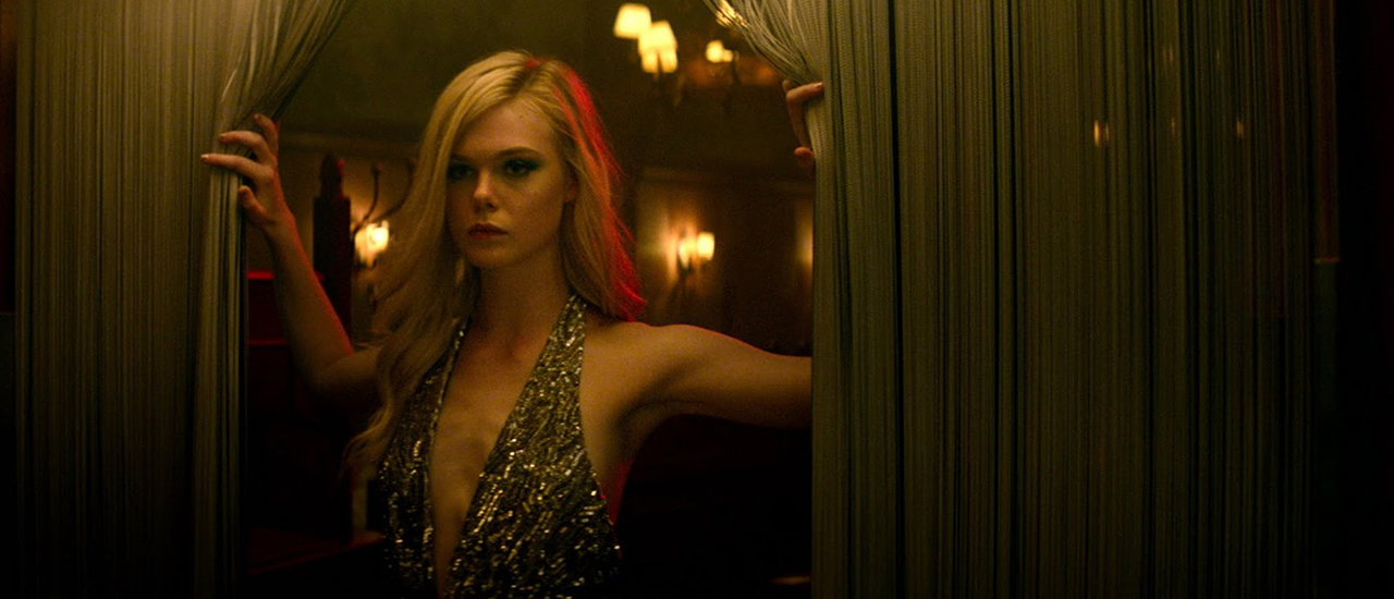 Une fois cet élément éclairci, l’une des toutes premières séquences à revêtir une importance capitale dans l’interprétation globale du film n’est autre que la scène d’ouverture. Dans celle-ci, nous découvrons Jesse ensanglantée, étendue sur un canapé. Initialement laissée pour morte, la caméra va finalement révéler, par un magnifique travelling arrière, qu’il s’agit en fait (simplement) d’un shooting photo. Tout sauf anodine, cette séquence dicte superbement le ton du film en opposant d’entrée de jeu la beauté et la mort, deux thématiques étroitement liées qui trouveront une conclusion funeste dans le dernier acte du récit. De la même façon, la scène du club où le personnage de Ruby (Jena Malone) évoque futilement les rouges à lèvres, en demandant à Jessie si elle est plutôt nourriture ou sexe, prend soudainement tout son sens lors du dénouement final. En parlant de Ruby, il est d’ailleurs intéressant de constater que les trois jeunes femmes que rencontrent Jesse au début du film représentent toutes, d’une certaine manière, une forme de beauté : Sarah (Abbey Lee) symbolise la beauté extérieure, Gigi (Bella Heathcote) la beauté artificielle et Ruby la beauté intérieure.