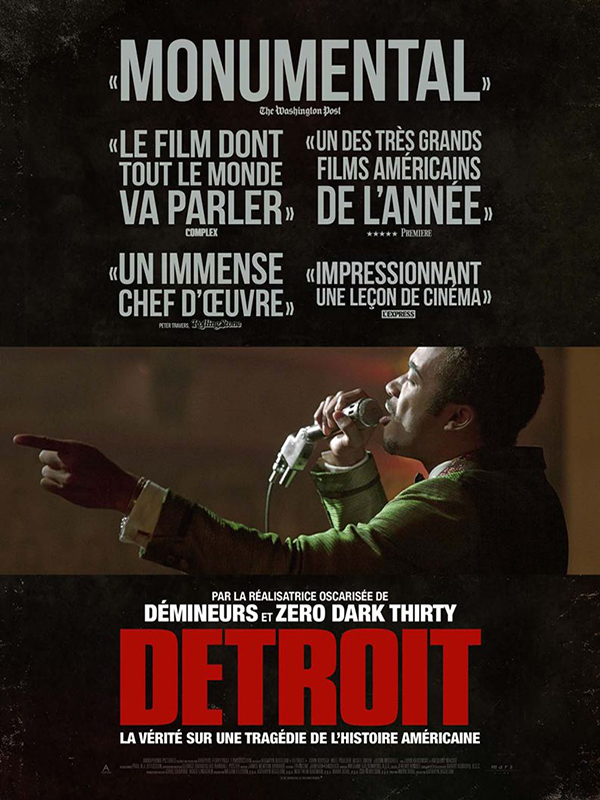 Été 1967. Les États-Unis connaissent une vague d’émeutes sans précédent. La guerre du Vietnam, vécue comme une intervention néocoloniale, et la ségrégation raciale nourrissent la contestation. A Detroit, alors que le climat est insurrectionnel depuis 2 jours, des coups de feu sont entendus en pleine nuit à proximité d’une base de la Garde nationale. Les forces de l’ordre encerclent l’Algiers Motel d’où semblent provenir les détonations. Bafouant toute procédure, les policiers soumettent une poignée de clients de l’hôtel à un interrogatoire sadique pour extorquer leurs aveux. Le bilan sera très lourd…