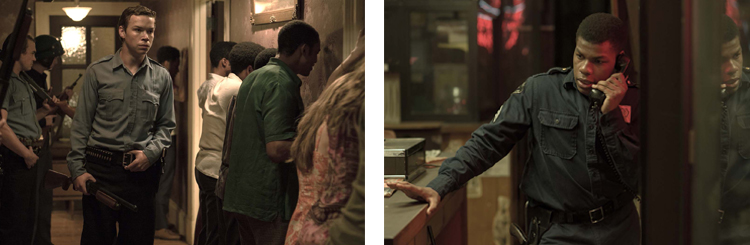 De manière générale, les protagonistes ne brillent d’ailleurs pas par leur profondeur, se résumant pour la plupart à des personnages fonctionnels, intervenant seulement dans l’histoire pour faire naître un sentiment spécifique. Un procédé décevant qui aurait toutefois pu passer si les ficelles n’avaient pas été aussi évidentes. Même dans sa volonté de nuancer ses propos, le film se montre effectivement trop mécanique et artificiel. A l’image par exemple de ses quelques policiers honnêtes intégrés maladroitement au récit pour venir contrebalancer l’image trop négative des forces de l’ordre. Malgré ce constat fort peu réjouissant, le long-métrage n’est pas dénué de qualités et peut, notamment, s’appuyer sur une mise en scène immersive. Tourné quasiment intégralement en caméra à l’épaule, dans un style nerveux très proche du documentaire, le film nous plonge en effet de plein fouet dans le Detroit de la fin des années 60. Sans être un amateur du genre (la caméra bouge beaucoup trop à mon goût), il faut néanmoins reconnaître l’efficacité du processus et sa contribution au rythme. Enfin, coté casting, malgré le peu de consistance des personnages, Will Poulter, John Boyega et surtout Algee Smith parviennent tout de même à tirer leur épingle du jeu.
