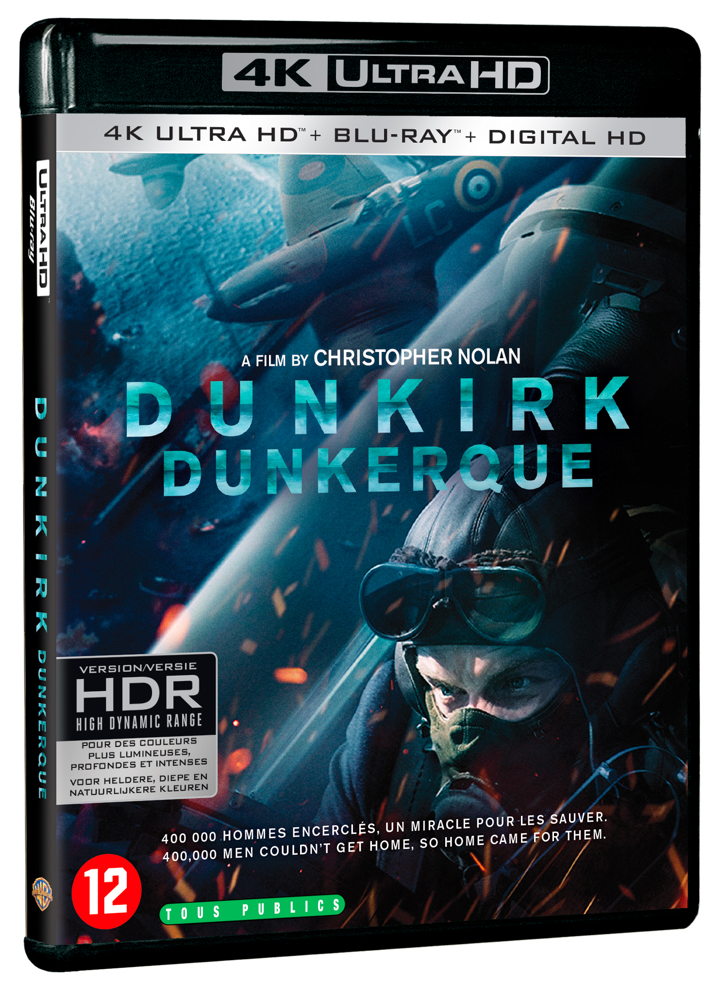 Côté audio, composante extrêmement importante du long-métrage, le disque 4K propose (seulement) une piste DTS-HD Master 5.1. Une légère déception sur le papier compte tenu du fait que les Blu-ray UHD nous ont souvent habitué à mieux (Dolby Atmos la plupart du temps, ou au moins Dolby Digital TrueHD 7.1). En pratique, l’expérience sonore reste toutefois assez remarquable. Immersive comme jamais, la piste offre en effet une amplitude incroyable et une précision de tous les instants, tant lors des déflagrations tonitruantes des avions allemands que des envolées massives de la composition de Hans Zimmer. De plus, VO comme VF bénéficient du même encodage HD, un bon point pour les amateurs de VF, habituellement délaissés.