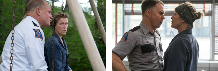 Si le film est aussi passionnant, c’est également car il peut s’appuyer sur un casting remarquable pour transcender le script. Ainsi, Frances McDormand se révèle absolument éblouissante dans la peau de cette mère confrontée au pire des deuils. Extrêmement charismatique, l’actrice incarne son personnage avec beaucoup d’intensité, lui conférant toute la force nécessaire, et laissant poindre une vulnérabilité touchante en de rares occasions. C’est peu de dire qu’elle s’approprie à la perfection les dialogues. A ses côtés, Sam Rockwell impressionne lui aussi en flic idiot et impulsif. Souvent sous-estimé, le comédien surprend, une fois encore, par sa capacité à rendre attachant un personnage pourtant détestable à première vue. Sans forcément voler la vedette à sa partenaire, il place néanmoins la barre très haut. Enfin, n’oublions pas Woody Harrelson, acteur expérimenté qui alterne magnifiquement entre humour et émotion à chacune de ses apparitions à l’écran. Finalement, avec le recul, l’une des rares faiblesses du long-métrage est peut-être de ne pas soigner l’écriture de tous ses seconds rôles. On regrettera aussi la recherche perpétuelle du bon mot, qui se ressent trop lors de certains échanges verbaux.