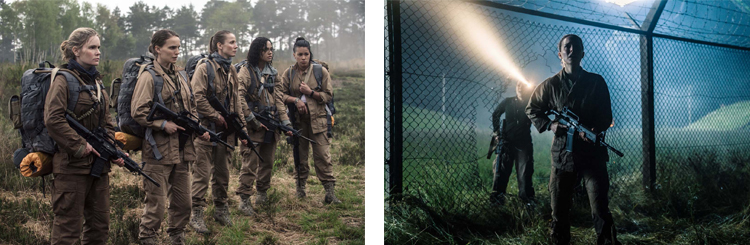 Certes, hormis l’héroïne, les autres protagonistes ne bénéficient pas forcément d’un développement majeur, se cantonnant pour la plupart à des figures stéréotypées, mais l’évolution dramatique reste néanmoins bien présente. Tout comme la réflexion d’ailleurs, le récit abordant de manière subtile des thématiques aussi diverses que l’autodestruction, l’amour ou encore l’humanité. Une réflexion également renforcée par la narration en flashbacks et flashforwards, celle-ci poussant sans cesse le spectateur à rassembler les pièces du puzzle et à s’interroger sur les corrélations entre ce que le long-métrage montre et ce qu’il raconte. A ce titre, par sa folie, le final risque certainement de déboucher sur des interprétations variables, mais il n’en demeure pas moins parfaitement cohérent par rapport au propos du film. Côté casting, si Natalie Portman porte magnifiquement le projet sur ses épaules, il faut tout de même souligner la prestation convaincante de l’ensemble de ses partenaires de jeu :  Jennifer Jason Leigh, Tuva Novotny, Gina Rodriguez, Tessa Thompson et bien sûr Oscar Isaac. Finalement, un seul regret prédomine à l’issue de la séance, celui de ne pas avoir eu la chance de profiter de cette superbe expérience en salle.
