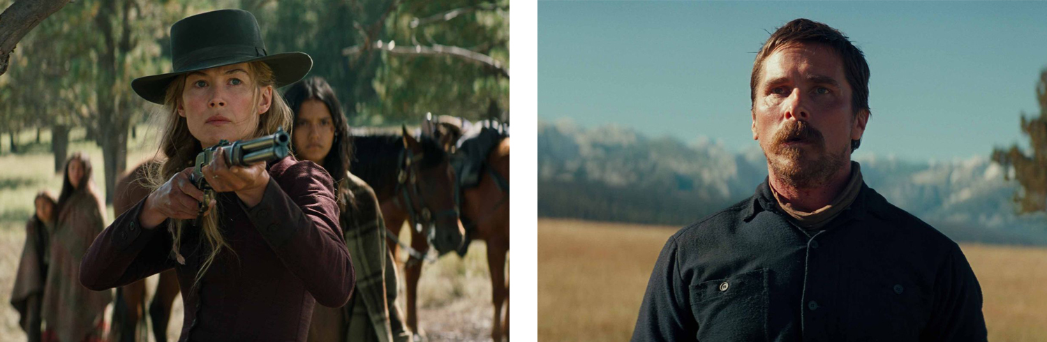 Dans la plus pure tradition du genre, Hostiles propose également un visuel particulièrement somptueux, caractérisé par des décors grandioses qui contrastent joliment avec l’intimité du récit. Des images superbes qui peuvent aussi s’appuyer sur une musique mémorable de Max Richter (The Leftovers), le compositeur allemand signant certainement ici l’une de ses plus belles BO. Si la mise en scène de Scott Cooper s’avère plutôt inspirée et maîtrisée, on regrettera en revanche le didactisme du montage, source de quelques longueurs dans la seconde moitié du récit. Au-delà de ses fabuleuses qualités formelles, le film bouleverse néanmoins principalement par le portrait déchirant de ses personnages. Finement écrits, ceux-ci se font le symbole du changement qui est en train de s’opérer dans le monde (modification des mentalités, avènement de l’industrialisation…). Ils peuvent, en outre, compter sur un casting exemplaire pour les incarner. Christian Bale, tout d’abord, délivre une performance tout en retenue dans la peau de ce soldat dont les convictions ne cessent de s’étioler à mesure qu’il progresse. Rosamund Pike, ensuite, brille par sa détresse touchante et sa fureur exaltante. Enfin, les seconds rôles que sont Wes Studi, Rory Cochrane, Jesse Plemons ou Ben Foster ne dénotent absolument pas, livrant eux aussi une interprétation engagée.