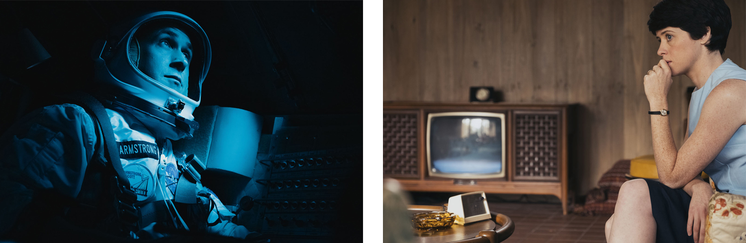 Un contraste qui conditionne aussi largement les personnages. Si le héros campé par Ryan Gosling choisit d’intérioriser constamment ses émotions, ne s’autorisant que rarement à lâcher prise, c’est tout l’inverse pour sa femme interprétée par Claire Foy, celle-ci se montrant au contraire expressive au possible, comme pour mieux inviter son mari au dialogue. En parfaite alchimie, les deux acteurs délivrent une performance sans fausse note, tout en retenue et sensibilité. De manière générale, on appréciera d’ailleurs la relative pudeur du long-métrage, qui ne cherche jamais à exacerber le patriotisme inhérent à l’histoire. Pour autant, le contexte historique de l’époque n’en reste pas moins bien présent, imprégnant profondément le récit sans jamais, toutefois, altérer la vision du réalisateur. Une vision qui puise ici sa force dans le portrait intime d’un homme déterminé à accomplir son rêve, dans la trajectoire tourmentée d’une famille frappée – très tôt – par le deuil. Sur le plan technique, outre la magnifique photographie de Linus Sandgren, signalons aussi, pour terminer, la BO mélancolique à souhait de Justin Hurwitz, déjà aux manettes des deux précédentes réalisations de Chazelle.