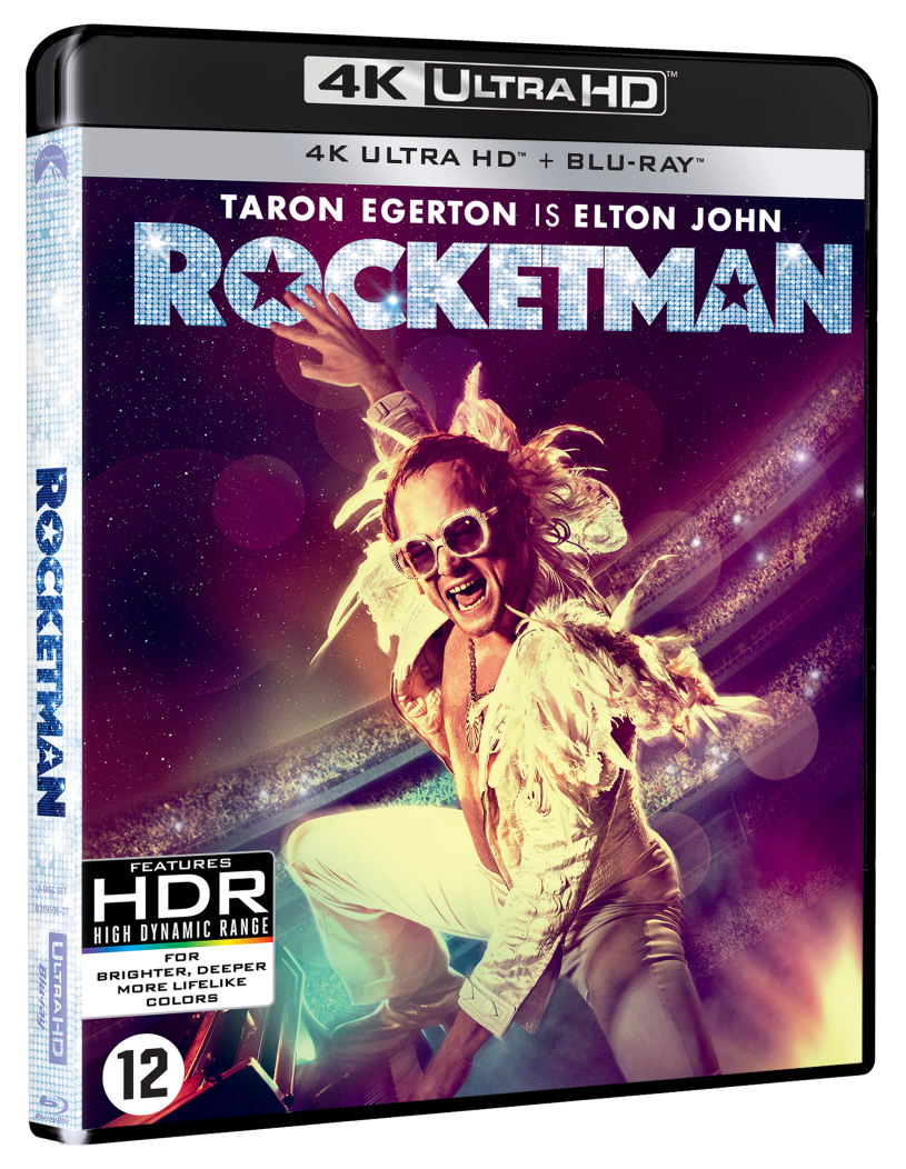 Sans forcément s’agir d’un long-métrage particulièrement impressionnant sur le plan visuel, l’édition Blu-ray 4K du film Rocketman séduit néanmoins par sa dimension technique sans faille, tant du point de vue de l’image que du son. Forte de sa définition précise, ses contrastes éclatants et ses noirs profonds, l’image propose un rendu UHD d’excellente facture, ne souffrant d’aucun défaut notoire à signaler. Plus que l’image, c’est cependant surtout le son qui impressionne ici. Disponible en VO, la piste Dolby Atmos (ou Dolby Digital TrueHD 7.1 si vous ne disposez pas de l’équipement nécessaire) s’avère en effet tout bonnement fantastique. Riche, ample et précise, elle offre aux séquences musicales une magnitude assez incroyable. Un paramètre qui contribue, à n’en pas douter, à renforcer l’immersion dans le film. Dommage toutefois que les amateurs de VF doivent, quant à eux, se contenter d’une simple Dolby Digital Surround 5.1, certes solide, mais tout de même nettement en retrait par rapport à son homologue anglaise. Enfin, le disque Blu-ray propose également de nombreux bonus tels que des scènes coupées/étendues ou des numéros musicaux prolongés. Au total, plus de 75 minutes de suppléments sont offertes, de quoi prolonger significativement l’expérience de visionnage.