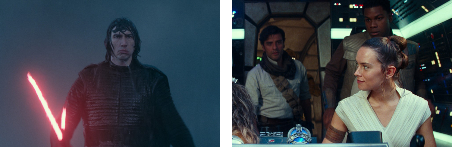 Heureusement, tout n’est pas à jeter et on appréciera notamment le fantastique sens du divertissement de J.J. Abrams. Malgré un scénario relativement faible, le film se laisse en effet suivre sans déplaisir, porté par un rythme soutenu et des scènes d’action prenantes. Sans forcément faire des étincelles, la réalisation s’avère également efficace, bien aidée par une direction artistique toujours aussi convaincante. Une direction artistique qui constitue d’ailleurs certainement l’un des plus grands motifs de satisfaction de cette nouvelle trilogie. Contrairement au volet précédent, l’humour se révèle aussi assez percutant, intervenant à des moments plus opportuns et misant sur des mécaniques plus universelles. Enfin, si la plupart des personnages secondaires n’ont qu’un intérêt purement fonctionnel au récit, les trajectoires dramatiques des personnages principaux – Rey et Kylo Ren en l’occurrence – sont en revanche particulièrement intéressantes. Malgré des performances solides de Daisy Ridley et Adam Driver, l’émotion ne point cependant jamais vraiment. La faute, probablement, au sentiment d’expédition qui émane de l’ensemble du film, l’évolution psychologique des héros étant bien trop rapide que pour convaincre.