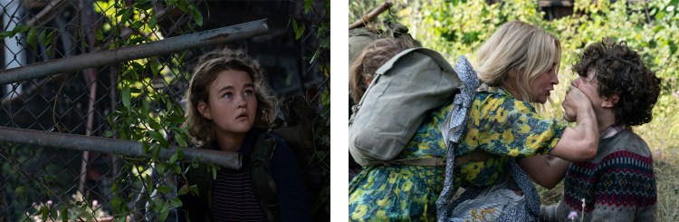 Et le résultat est à nouveau extrêmement convaincant. Reprenant précisément son récit là où le premier long-métrage s’était arrêté (non sans avoir au préalable délivré un sublime prologue), Sans un bruit 2 profite du départ de la petite famille pour élargir considérablement son champ d’action, abandonnant par la même occasion la formule « huis-clos » largement utilisée dans le premier opus. Un choix qui avait de quoi faire craindre le pire tant cet élément constituait l’essence de l’œuvre, mais qui permet finalement au film d’éviter de s’enfermer dans une simple redite de son concept. En élargissant son univers, le réalisateur trouve effectivement l’occasion d’exploiter un nouveau terrain de jeu. Et force est de constater qu’il y parvient brillamment puisque le long-métrage regorge de très jolis plans. A l’image par exemple de ce magnifique traveling sur un quai de gare désert. Côté réalisation, on appréciera également les différentes séquences de montage parallèle qui, en plus de renforcer la tension inhérente des scènes ou les enjeux émotionnels des personnages, constituent aussi une belle façon de réunir à l’écran chacun des membres de la famille malgré la distance qui les sépare parfois.